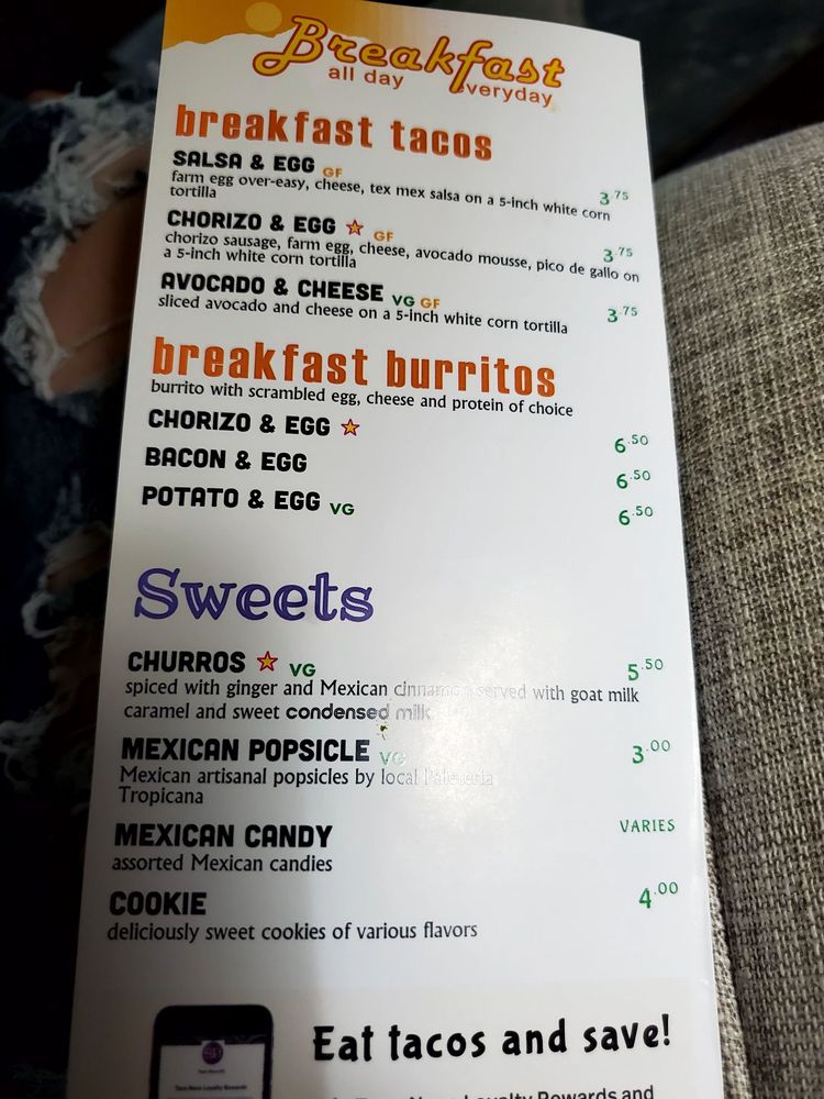 egg over-easy, cheese, tex mex salsa, corn tortilla